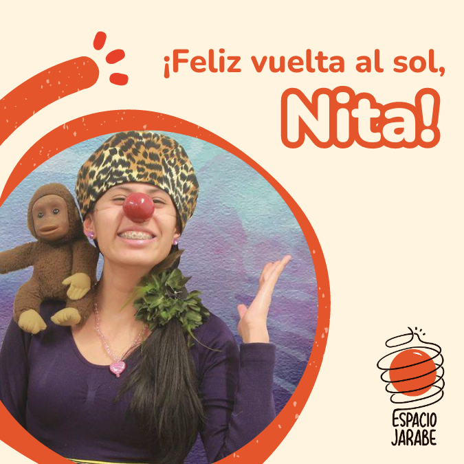 Nita ha acompañado a jarabe desde sus inicios con el compromiso, energía y honestidad que la distinguen solo a ella. Me encanta que sea compleja y que podamos conversar de todo, que no tenga miedo de hablar y de interpelarte si es necesario, que trabaje cerca a mi casa y aunque nunca pasa, siempre esté la posibilidad de ir a tomar lonche. Y ni digo de su talento como payasa, es impresionante! tengo en mi memoria tantos momentos donde me hizo morir de risa, donde me conmovió profundamente, y mis favoritas: las que me generó ambos al mismo tiempo.